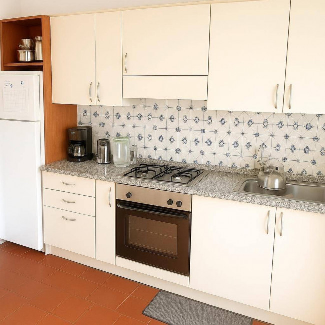 Ground floor: entrance hall, one bedroom, cozy living room, kitchen with direct access to the terrace, bathroom, plus a second entrance leading to a further living room with kitchen.